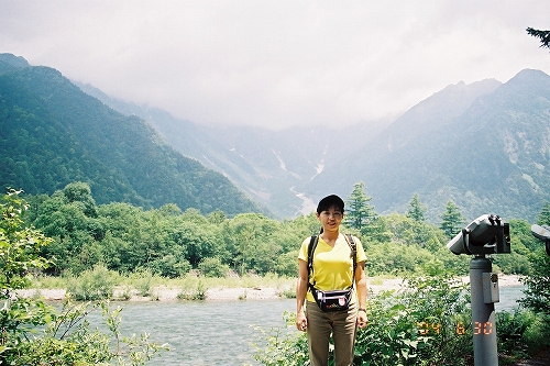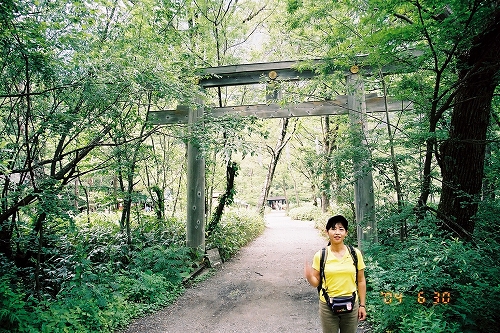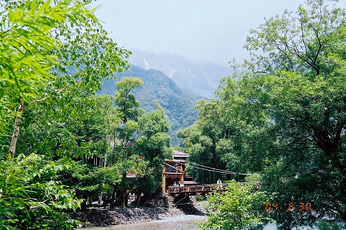 途中にある嘉門次小屋です 祈念バッジを買いました
