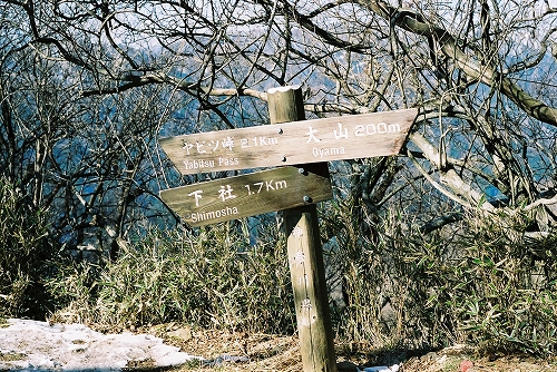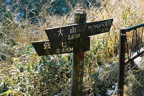 蓑毛(8:00)→(9:05)ヤビツ山荘(9:20)→(10:50)大山山頂(11:10)→(12:05)見晴台(12:15)→(12:35)阿夫利神社下社(12:50)→ 大山寺 →(13:45)大山ケーブルバス停