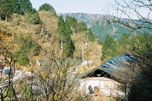 ヤビツ山荘からバス停を見下ろします