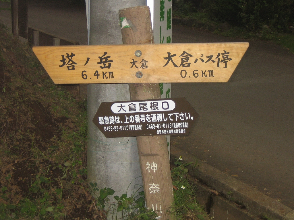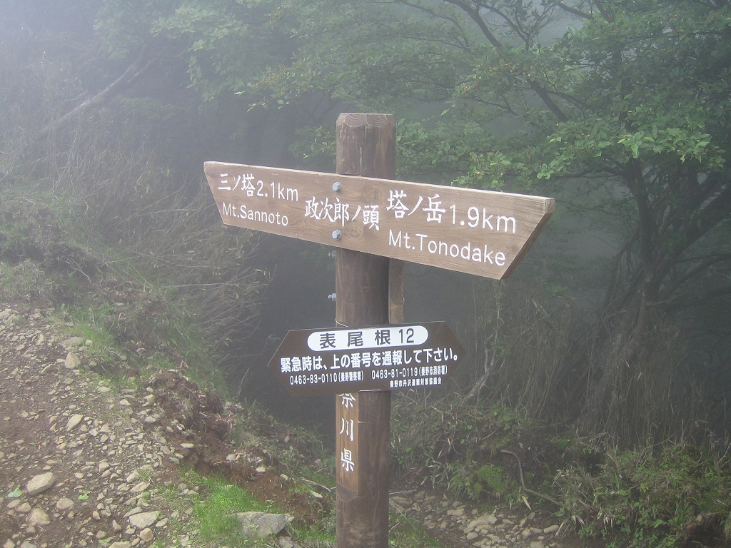 ヤビツ峠バス停(9:10)→(10:47)二ノ塔 →(11:03)三ノ塔 →(11:43)烏尾山 →(12:05)行者ヶ岳 →(12:23)政次郎ノ頭 →(12:54)新大日 → 木ノ又大日 →(13:33)塔ノ岳(14:10)→ 花立 → 堀山 →(16:26)登山口