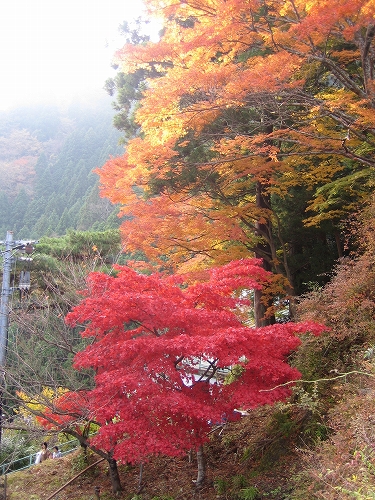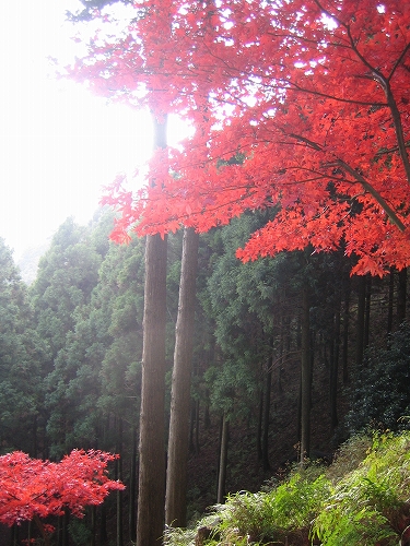 下社に近づくと次第にモミジの紅葉が目立つようになります
