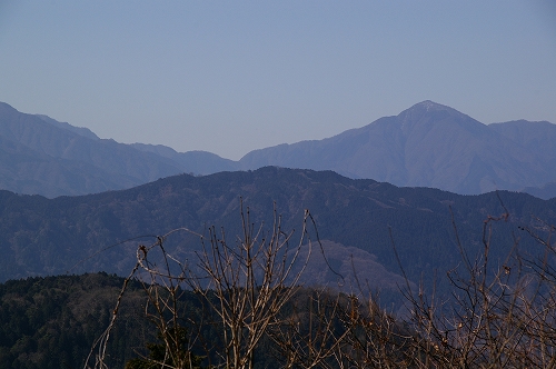 高尾山山頂からは丹沢山塊が正面に見えます 左端が丹沢山で、右端が最高峰の蛭ヶ岳です