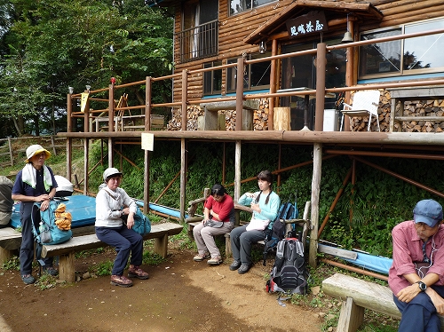 丹沢ベース小屋前で休憩します 少しお疲れのようです