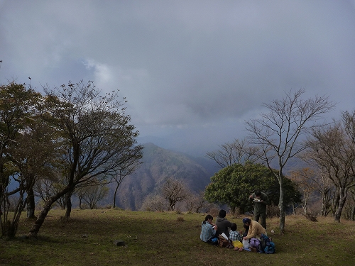 鍋割山頂は展望が良くありません ご家族連れが名物「鍋焼きうどん」を召し上がっていました