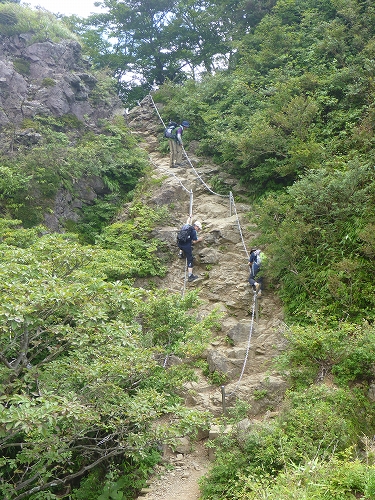 行者ヶ岳を過ぎたところのクサリ場です しっかりした鎖が付けられていて安心して下れます