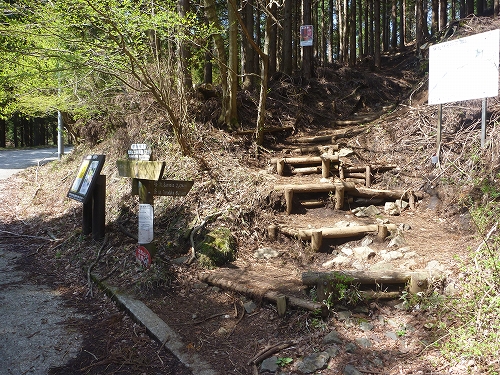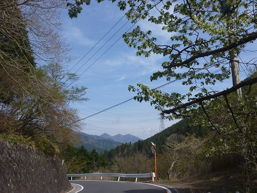 ヤビツ峠バス停を出たところです 大山三峰が正面に見えます