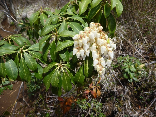アセビは釣鐘状の花が房状に咲きます アセビは葉、花、樹皮などに毒性の高い「グラヤノトキシン」を含むため、動物に食べられることがないそうです