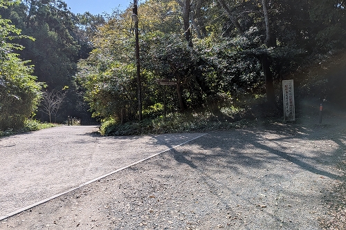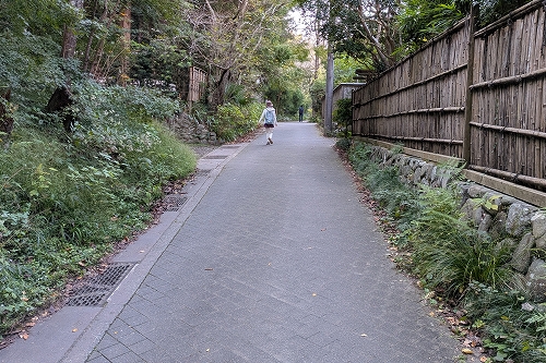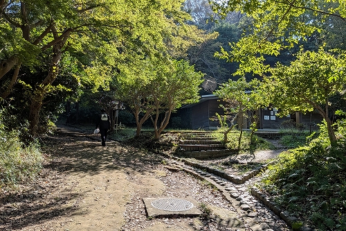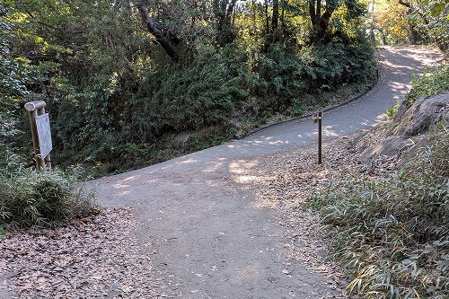 源氏山公園詰所の前を通過し、化粧坂(けわいざか)への道を左に分け右へ行きます