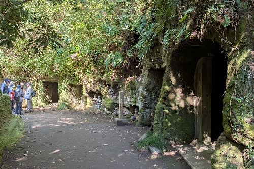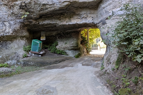 寿福寺境内から市街へ出るための手彫りのトンネルを潜ります