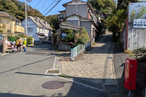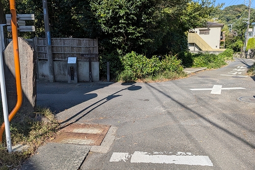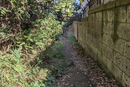 民家の塀沿いの道を歩きます まんだら堂やぐら群の裏手に当たるようです
