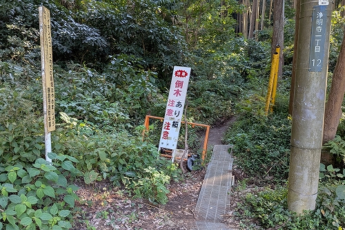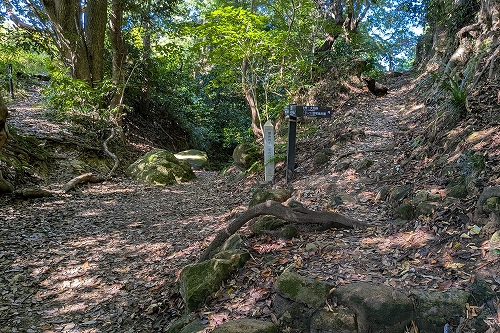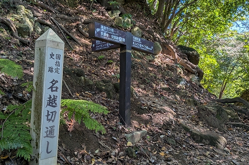 衣張山への分岐ですが、国指定史跡の名越切通し(なごえきりどおし)を見学しに行きます