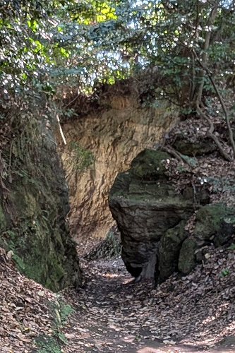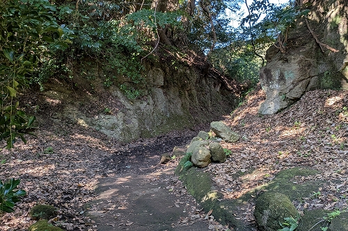 名越切通しの中で最大規模の第一切通しです 道はL形に曲がっています