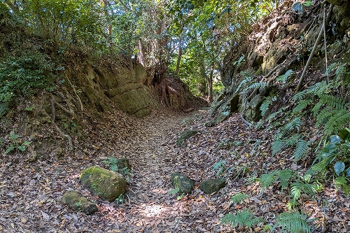 歩くコースはたくさんありますが、近くの「名越切通し」という史跡に寄りながら山頂を目指すことにしました。鎌倉の山々は低山ですが、住宅が視界に入らないほど緑が濃く、深山に入ったような錯覚に陥るほどです。今回歩いたコースも出会ったハイカーは数人で、熊の心配も無く静かな山歩きを楽しむことができました。
