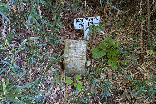 三等三角点「宅間」119.93mの立札がありました 設置してから日が経っていないように見えました