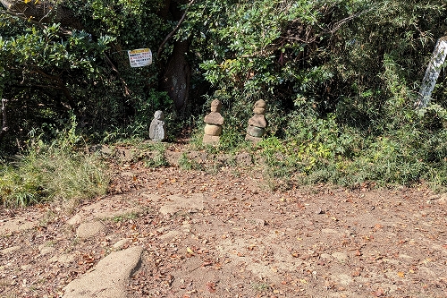 道なりに進みお地蔵さんの横を通過すると正面に衣張山の小さな道標があります