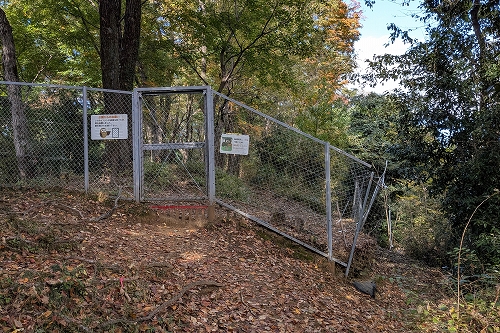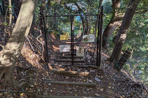 公園内の尾根道歩きです 鹿除けの電気柵を潜ります