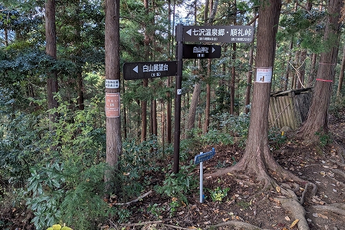 左は白山神社、右は白山展望台の分岐は、右へ行きます
