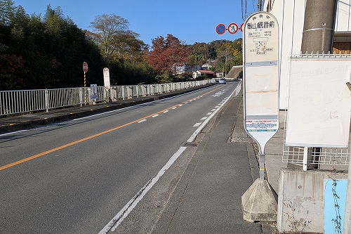 県道に出て信号を左に十数メートルで飯山観音前バス停に着きます