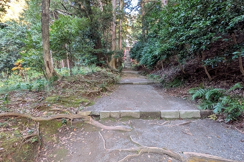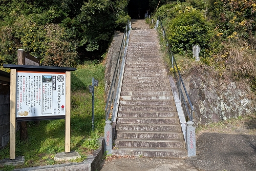 階段の左側が、源頼朝が参詣前に白装束に着替えた衣裳場とのことです