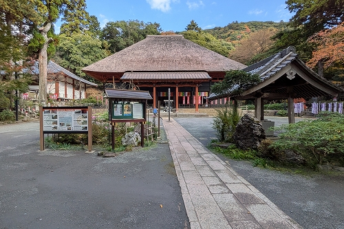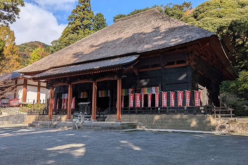 国の重要文化財に指定されている茅葺屋根の本堂薬師堂です