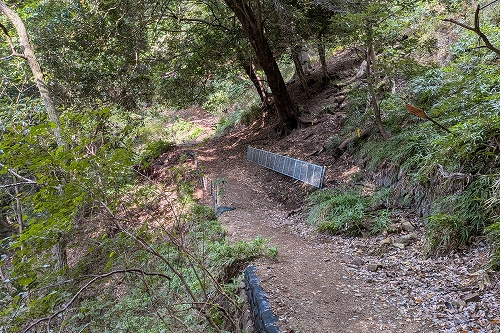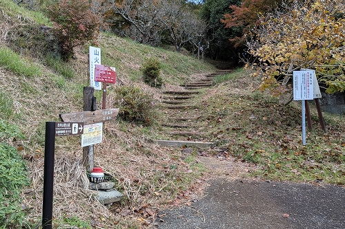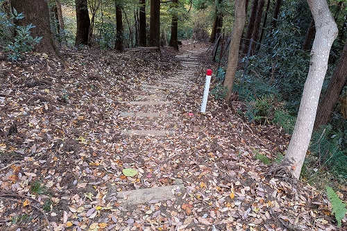 梅の木尾根、弁天の森キャンプ場への分岐です 右へ階段を登ります
