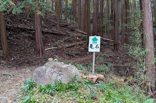 途中で亀石が見え、一旦薬師林道まで下って回り込まなければ近づけないことがわかりました