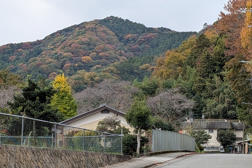 七沢温泉街を抜けて振り返ると日向山がこちらを見下ろしていました