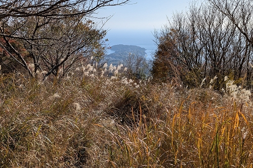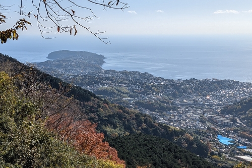 右側が開けたところで相模湾と真鶴半島が望めました