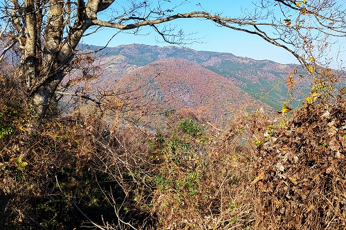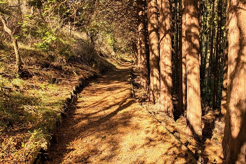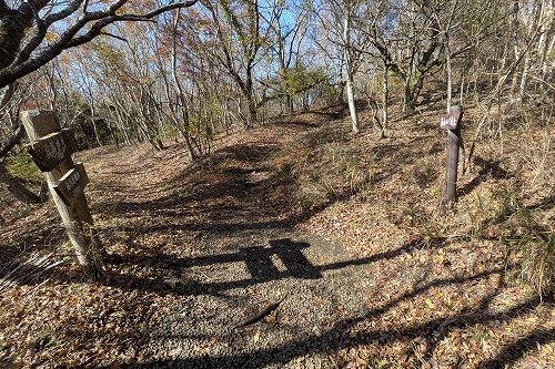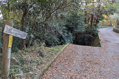 林道の途中でショートカットの道がありましたが、行く先を覗くと落葉で道が不明瞭だったので、このまま林道を歩くことにしました