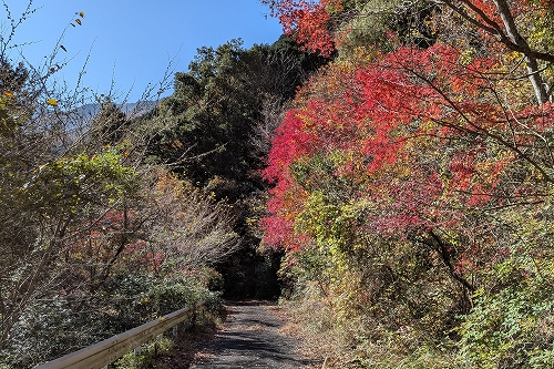 林道を快調に歩きます 所々にあるモミジが綺麗です