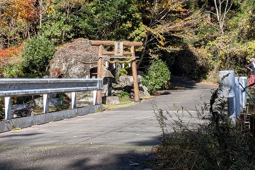 山の神に着きました 橋を渡った先が「しとどの窟」への分岐です