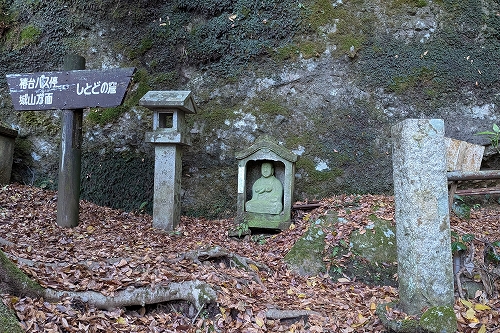 城山は、かつて土肥氏の城があったことからその名が付いたようです。土肥氏は、源頼朝が1800年の石橋山の戦いに敗れ平氏から逃れていた際に城の北西側にある窟屋に匿ったそうです。その窟屋が「しとどの窟」で湯河原町指定文化財に指定されています。