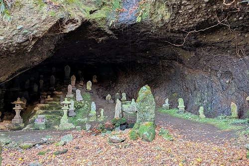 土肥椙山巌窟が正式な名前のようです 窟屋の上部から水が流れていました 内部には20体以上の石仏がありました