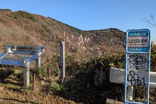 幕山公園バス停(9:15)→(9:18)幕山登山口(9:30)→(10:35)幕山(10:45)→(10:57)大石ケ原分岐 →(11:31)大石ケ原(11:35)→(11:55)一ノ瀬 →(12:42)ししどの窟(12:52)→(13:08)椿台(13:10)→(13:37)城山(14:15)→(15:18)湯河原駅