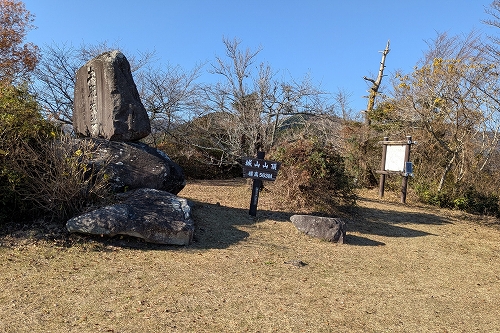 少しの急坂を登ると城山(土肥城跡)に着きます 多少アクシデントはありましたが、予定より早く着くことができました 中食休憩を摂ります