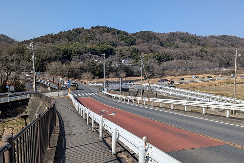 八菅橋に近づくと八菅山が見えてきます