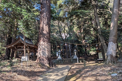 社殿の左側を回り込んで八菅修験ハイキングコースに入ります