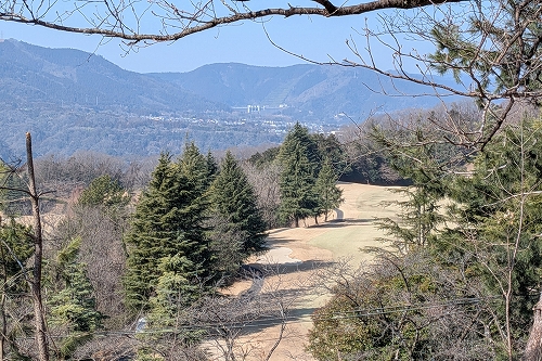 中津川ゴルフコースの際を歩きます 山が見えてきました