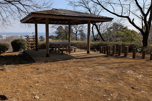 展望台に戻り東屋で中食にします 食事中に老人がガス臭いオイルバーナーで湯沸かしを始めたので、耐えられず途中で切り上げて席を離れました