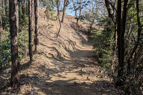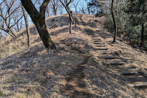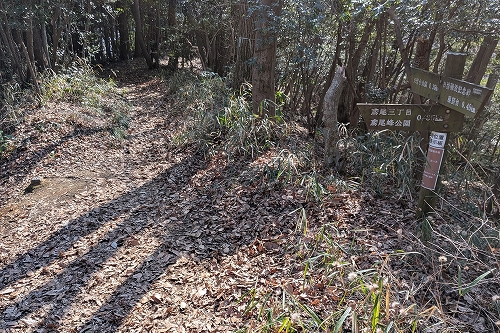 少し傾斜が増した階段状の道を登ると鳶尾山の山頂に着きます